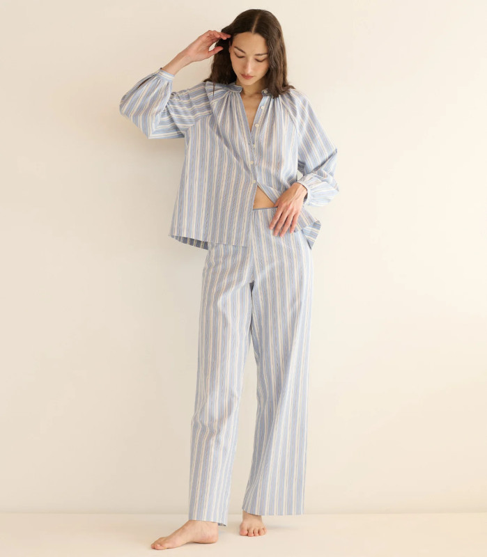 Ganni Stripe Cotton Pyjamas Shirt, $295 $89, available here and Pants, $215 $95, available here