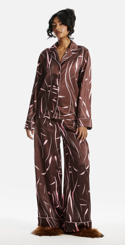 By Anthropologie Button-Front Pajama Shirt, $88, available here and Silky Pajama Pants, $88, available here