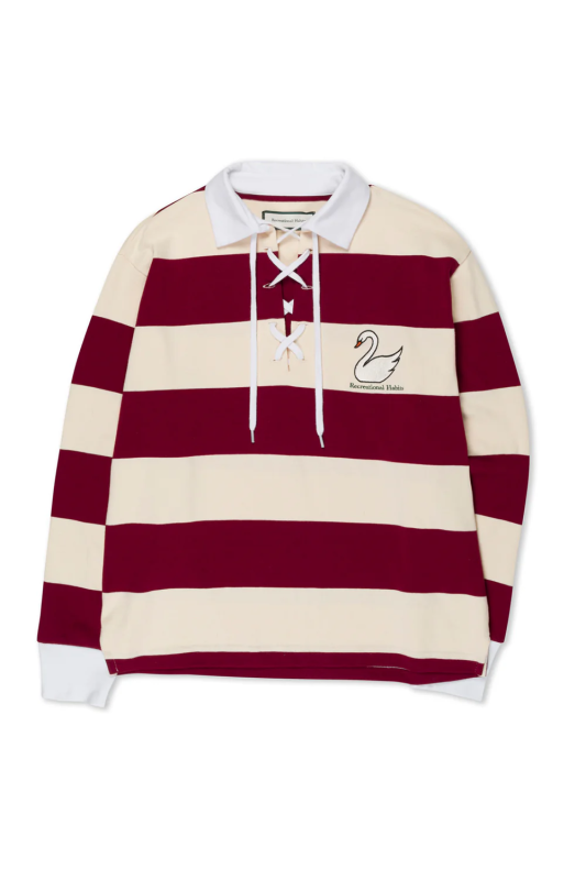 The appeal is clear: The rugby shirt is inherently comfortable (oversized fit) and warm (thick knit jersey fabrics and long sleeves), making it a natural choice for fall and winter layering. The resurgence feels timely, aligned with a wider ’90’s revival of preppy staples (like the polo shirt) as well as an androgynous or unisex appeal.