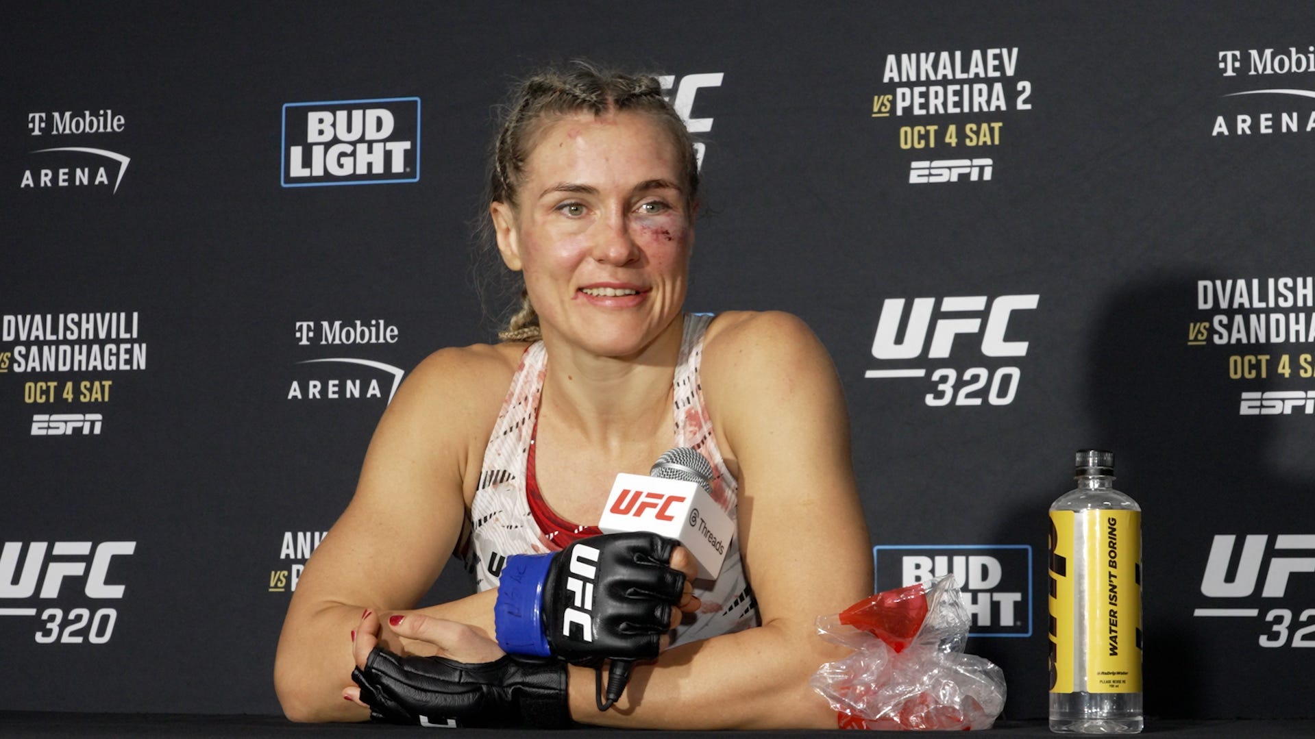UFC 320 winner Yana Santos spoke to MMA Junkie and reporters post-fight after her unanimous victory over Macy Chiasson